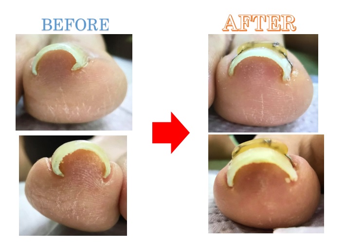 両足巻き爪でお悩みのUさん。爪がやわらかく初回でかなり矯正できました。痛みは初回で無くなって