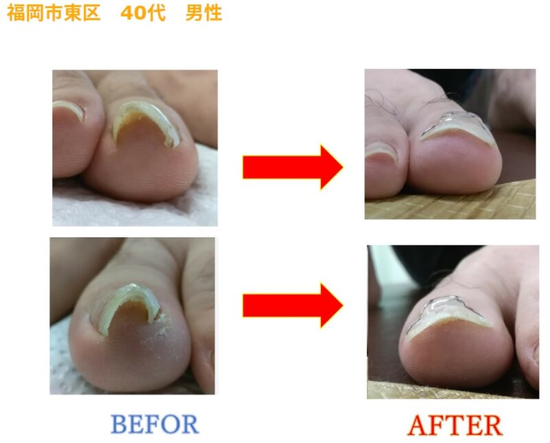 何度も矯正しても矯正できなかった頑固な巻き爪がここまでなるとは驚きです!