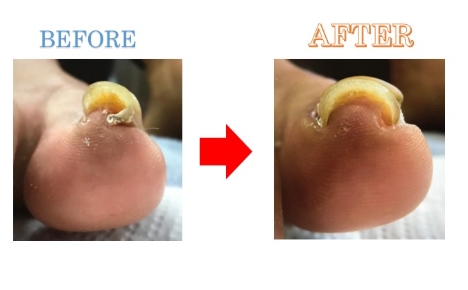 画像は4回目ですが、爪の癖が強く厚みもあるのでじっくりと矯正して行きます。