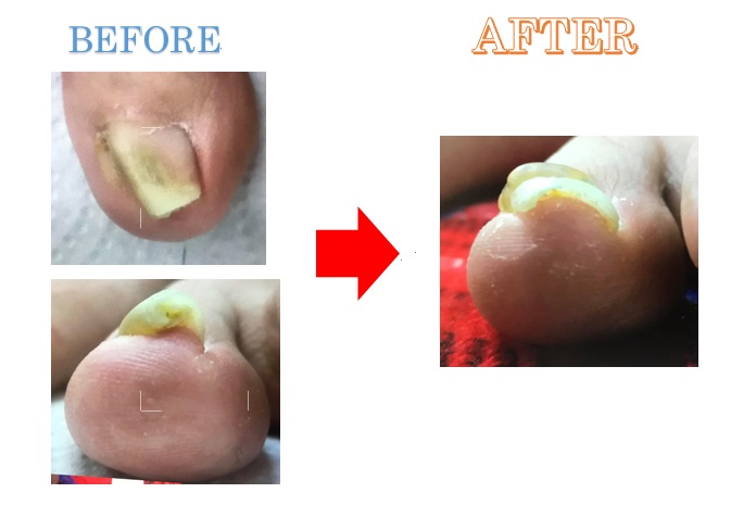 片側の爪が起き上がりほぼ1周していました。痛みも爪の根本あたりに強く出ていました。