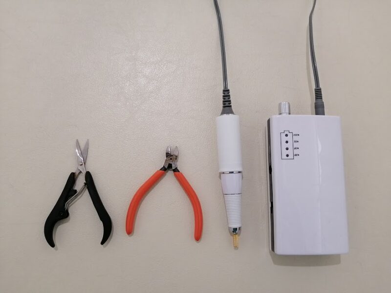 専用のニッパーで爪を切り、グラインダーという特殊な器具を用いて厚みを削っていくことで形を整えます。
