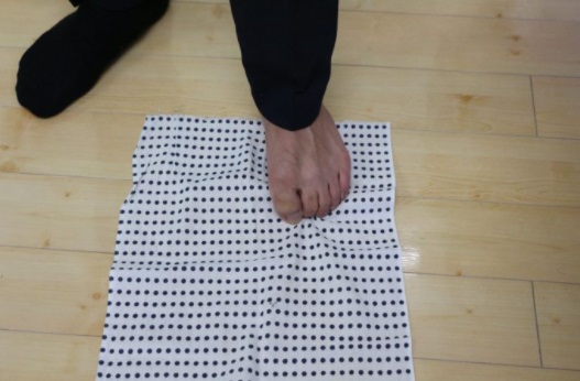 足指でタオルを掴むようにする事で、足底の筋が鍛えられて、足のアーチが少しずつ機能して、足底の筋がしっかり機能されることで偏平足が少しずつ解消されてきます。