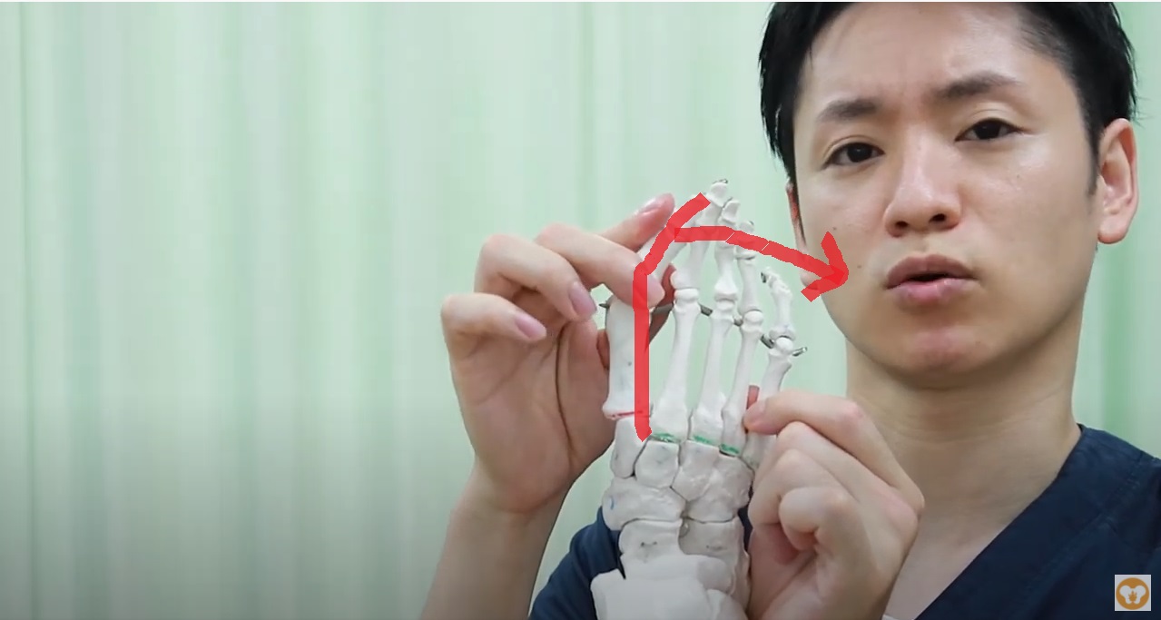 この状態だと筋力がないので靴の形に変形しやすいのと、指先が内側に入ってしまいます。