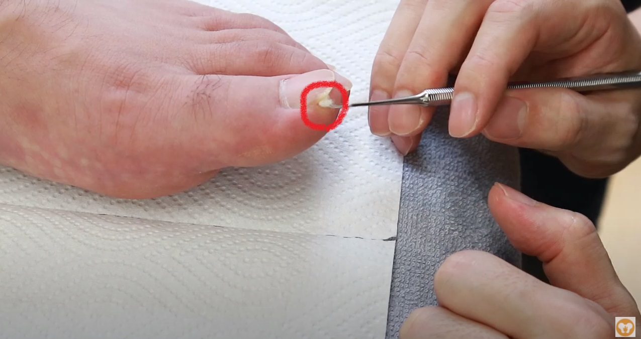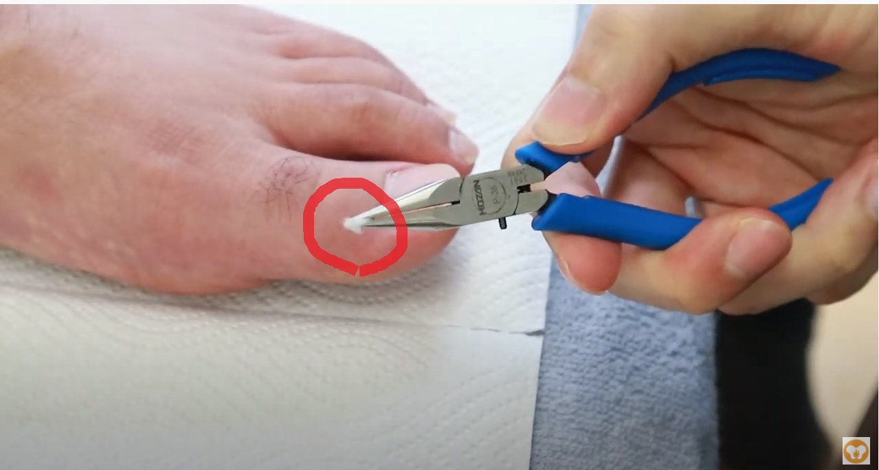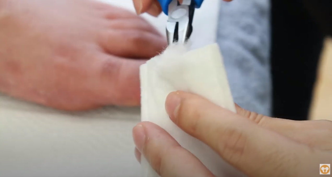 コットンを丸めて、入り込んでいる爪を開いてその間に入れ込みます。巻いている方は少し痛いかも知れませんが、すぐに楽になります。