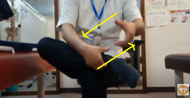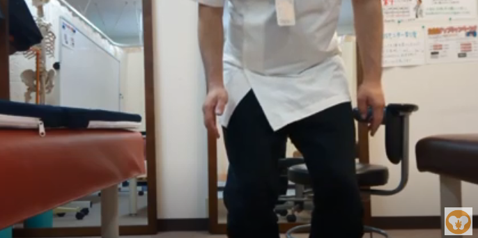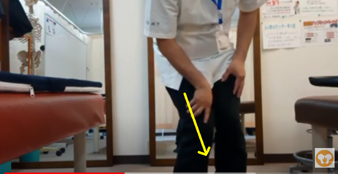 1・検査法 屈伸をして行き膝が真っすぐ落ちるか確かめます