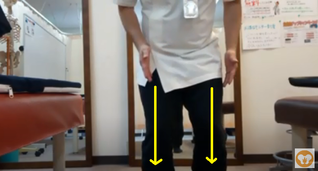 3再度1と同様の検査をしてみます。先ほどと比べて膝が真っすぐに落ちやすくなります。