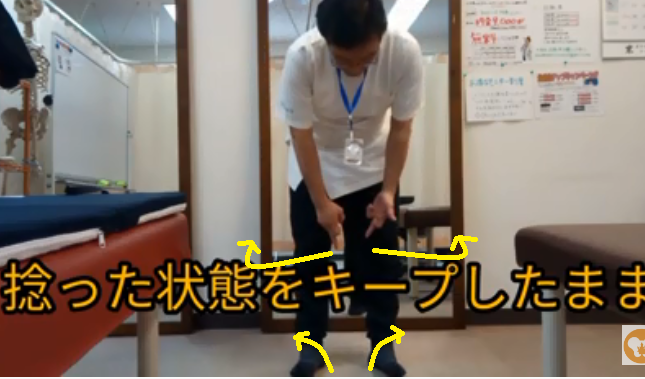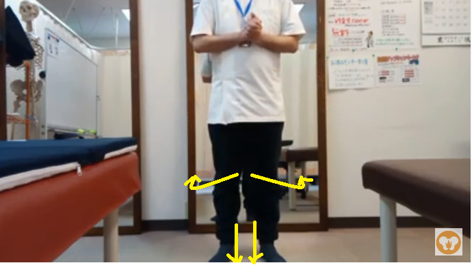 ②膝を外側に捩じるように力を入れていきます。
