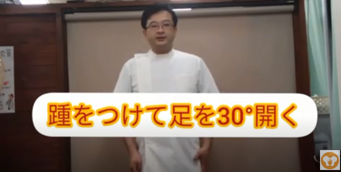 ②お尻を絞めて足が外側に回るように力を入れていきます。