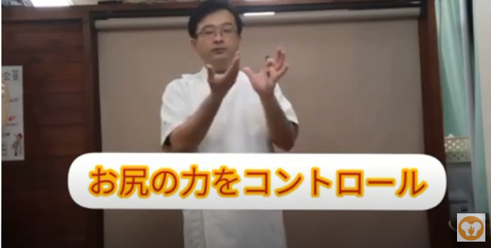通常は軽くお尻に力が入っている状態ですが、O脚の人は0か100と言う極端なお尻の使い方しかできません。そのためこの体操で力を入れたり抜いたりすることでお尻の力をコントロールできるようにします。