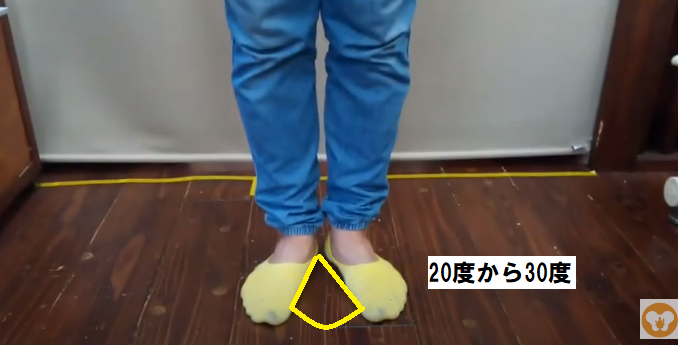 ですので、足先を20度から30度ほど開いて立つ事が基本になります。