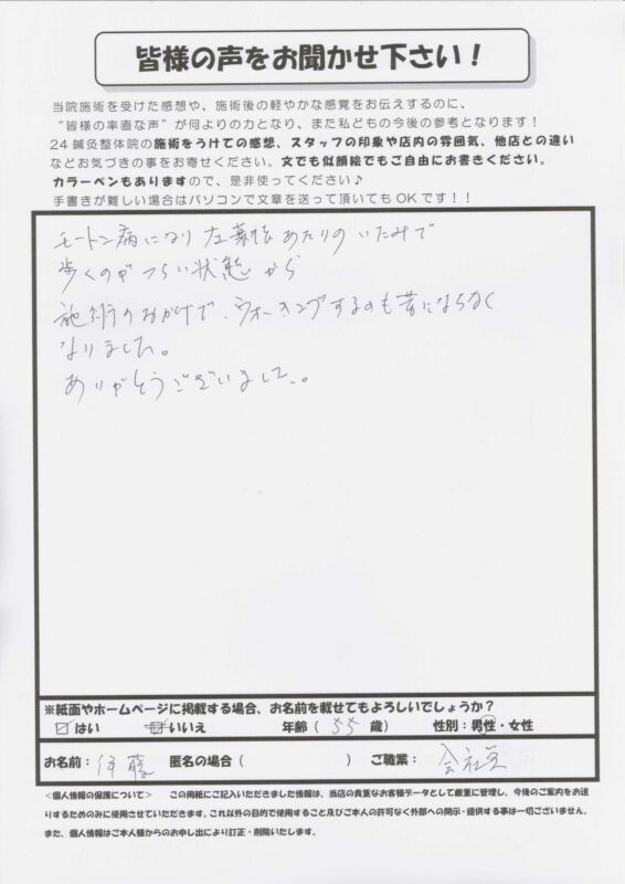 お客様の声 アンケート、足・膝・足首などの痛み・しびれ