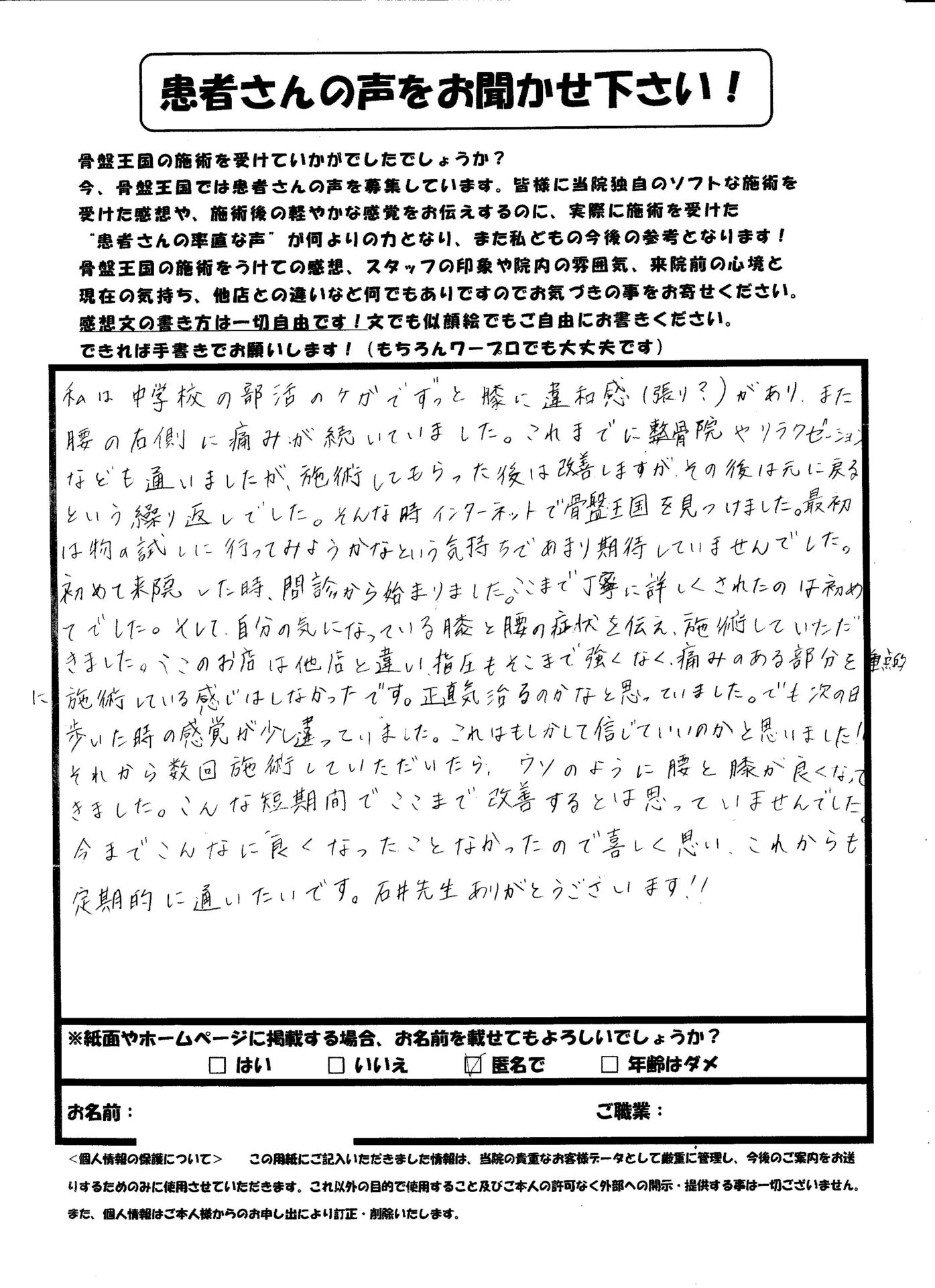 最初は半信半疑でしたが、嘘のように治りました!