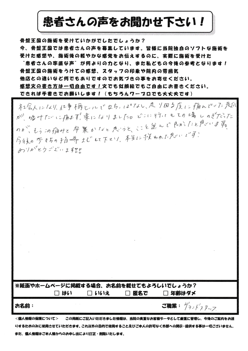 11-24 宝さん 仕事柄ヒールを履くので巻き爪が痛んでいました