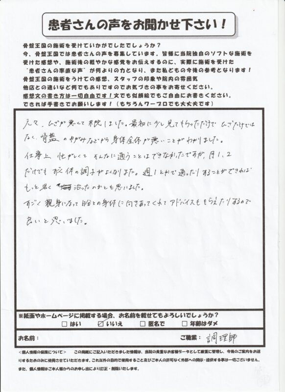 お客様の声 アンケート、足・膝・足首などの痛み・しびれ
