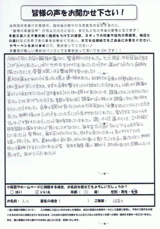 2. 【お客様の声】八王子足改善センターの口コミ・体験談|外反母趾・O脚・巻き爪改善 /