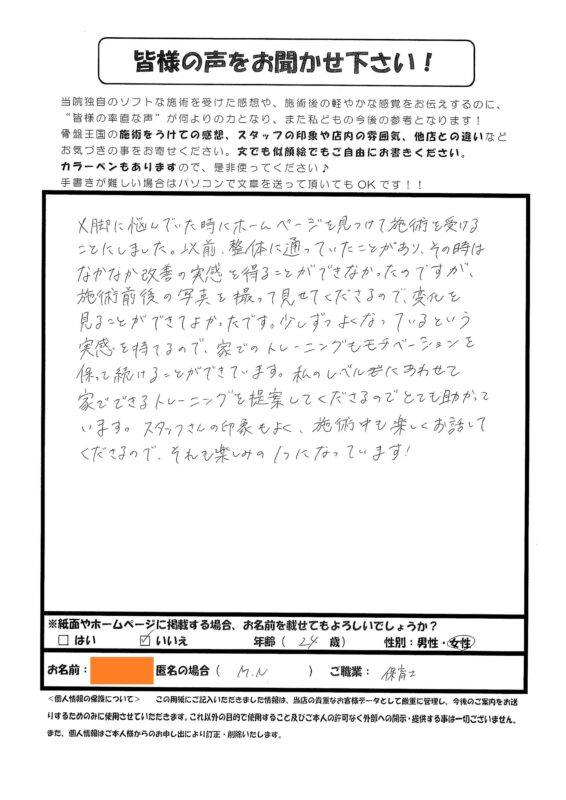 お客様の声 アンケート、O脚・美脚矯正