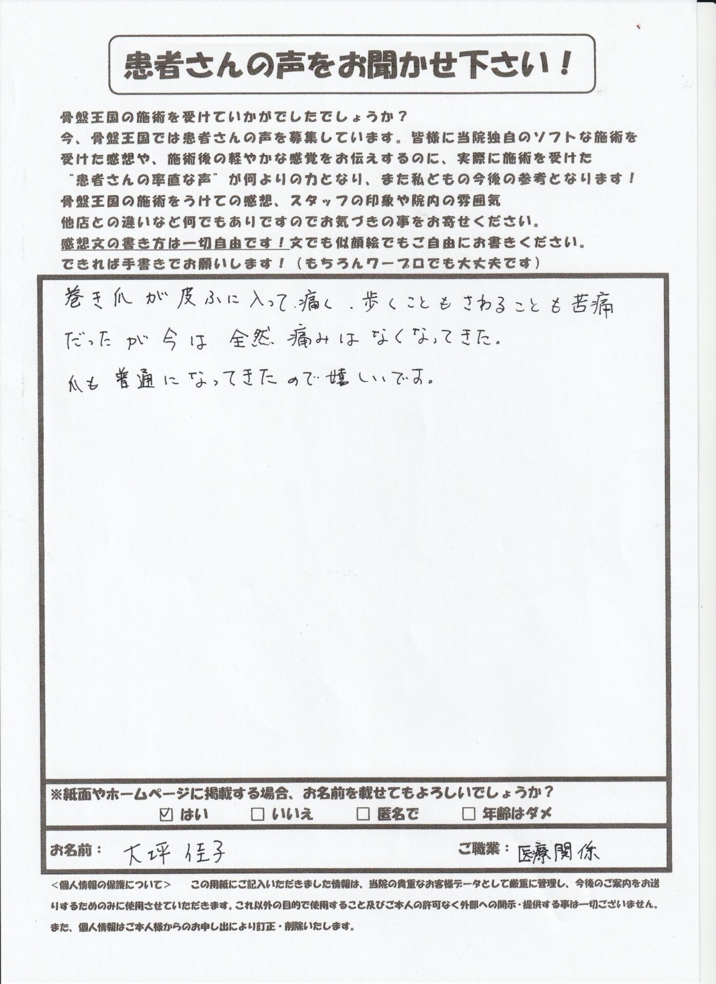 6-25 大坪さん 巻き爪で来院しました