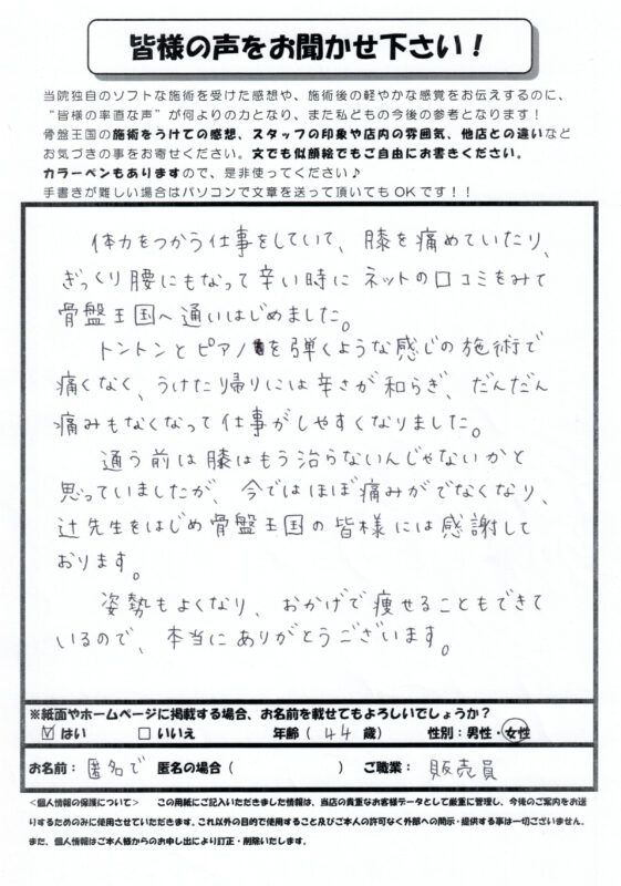 お客様の声 アンケート、足・膝・足首などの痛み・しびれ