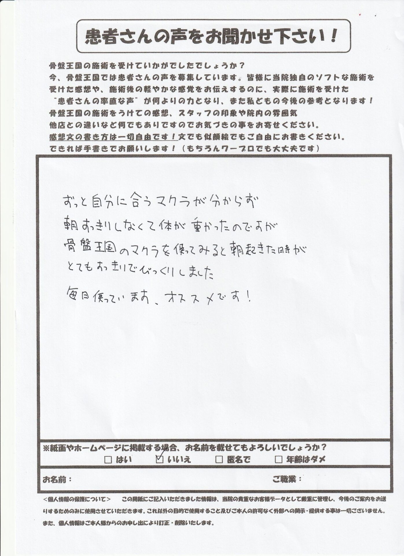 6-21 無名 王子枕を使ってから朝すっきりしています