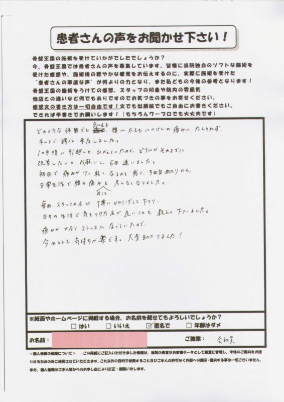 お客様の声 アンケート、足・膝・足首などの痛み・しびれ