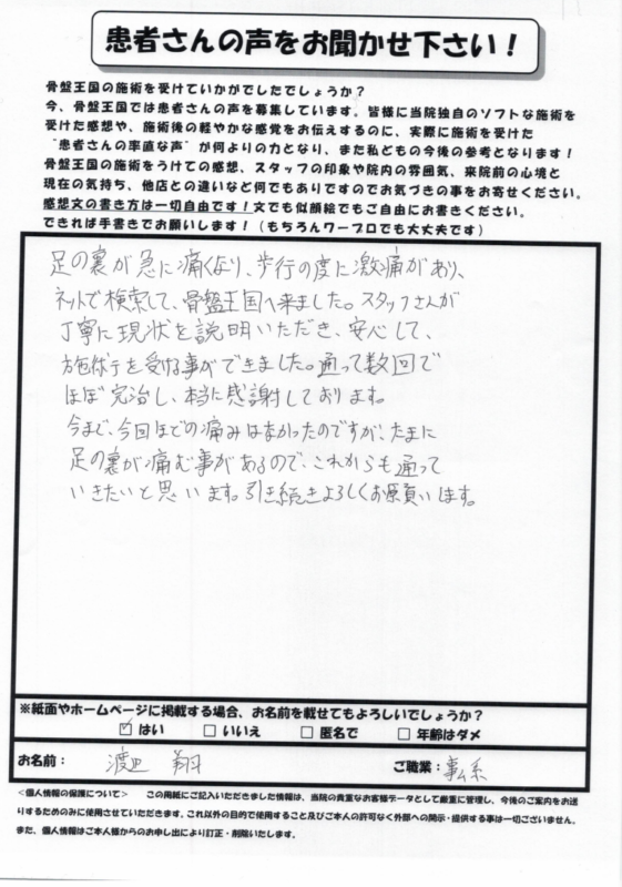 お客様の声 アンケート、足底筋膜炎