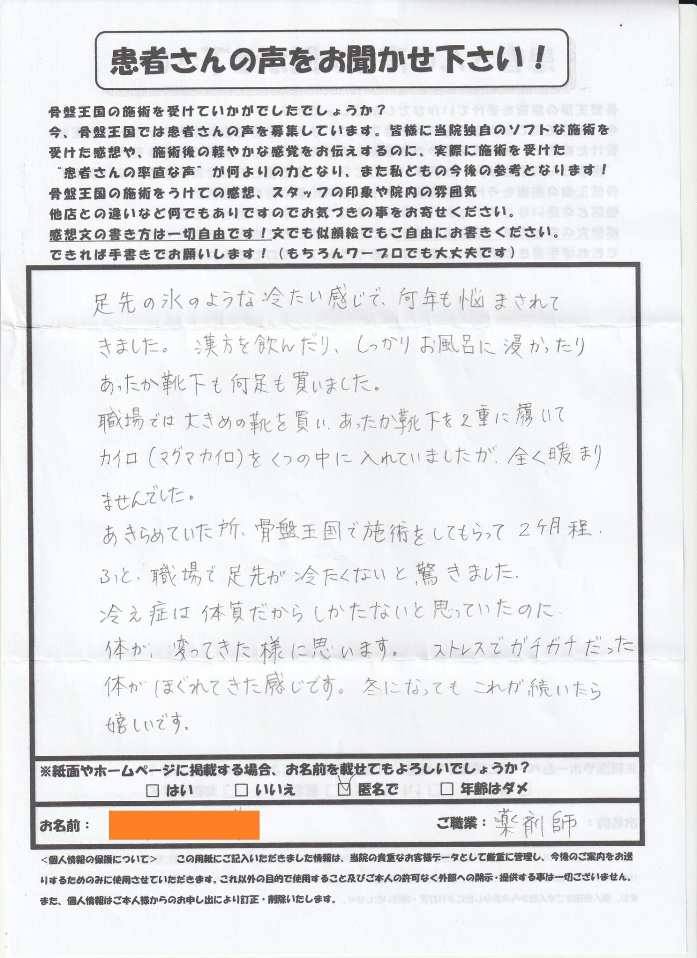 6-20 高木さん 足先が冷たいことに悩んでいました