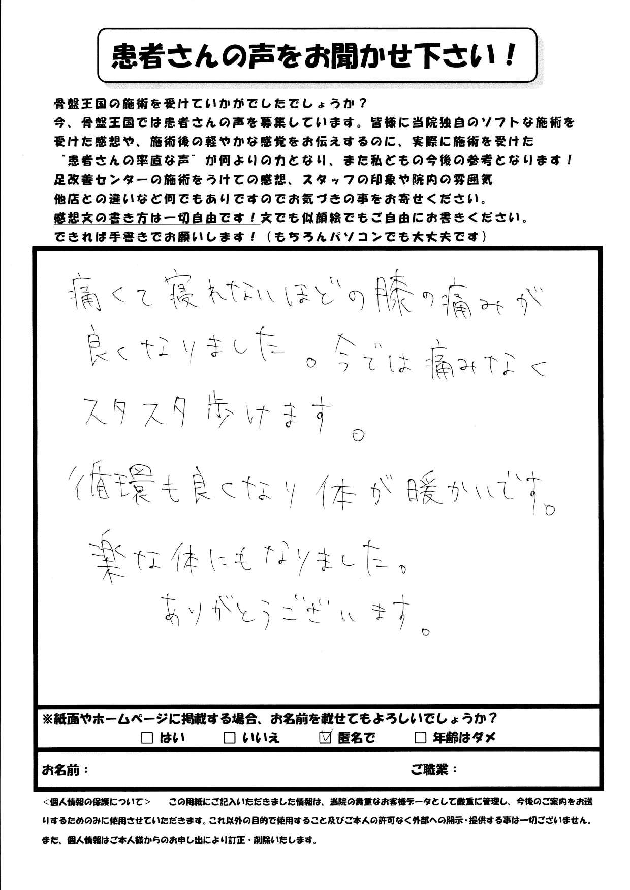 お客様の声 アンケート、足・膝・足首などの痛み・しびれ