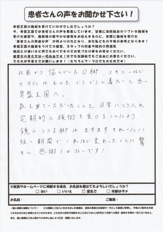 お客様の声 アンケート、O脚・美脚矯正